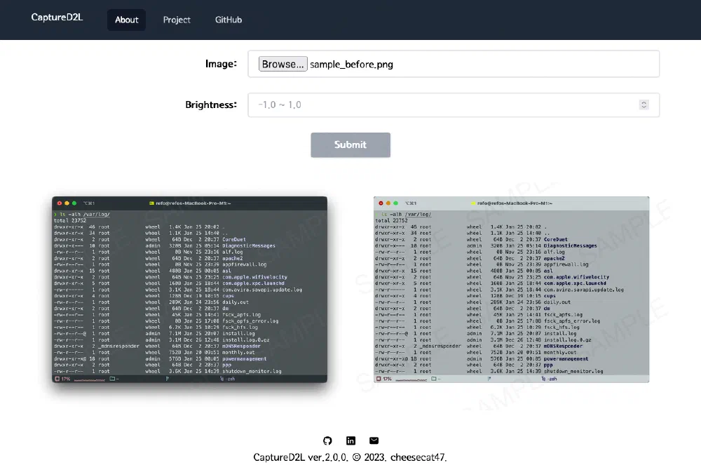 이전 배포를 통해 서버와의 통신 없이 브라우저 상에서 다크 모드 이미지를 라이트 모드로 변환하는 기능과 밝기를 조절할 수 있는 기능까지 추가했습니다.