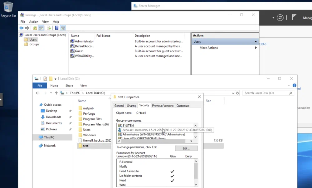 - Windows에서는 동일한 상황에 ‘알 수 없는 사용자’와 SID로 표시됩니다.